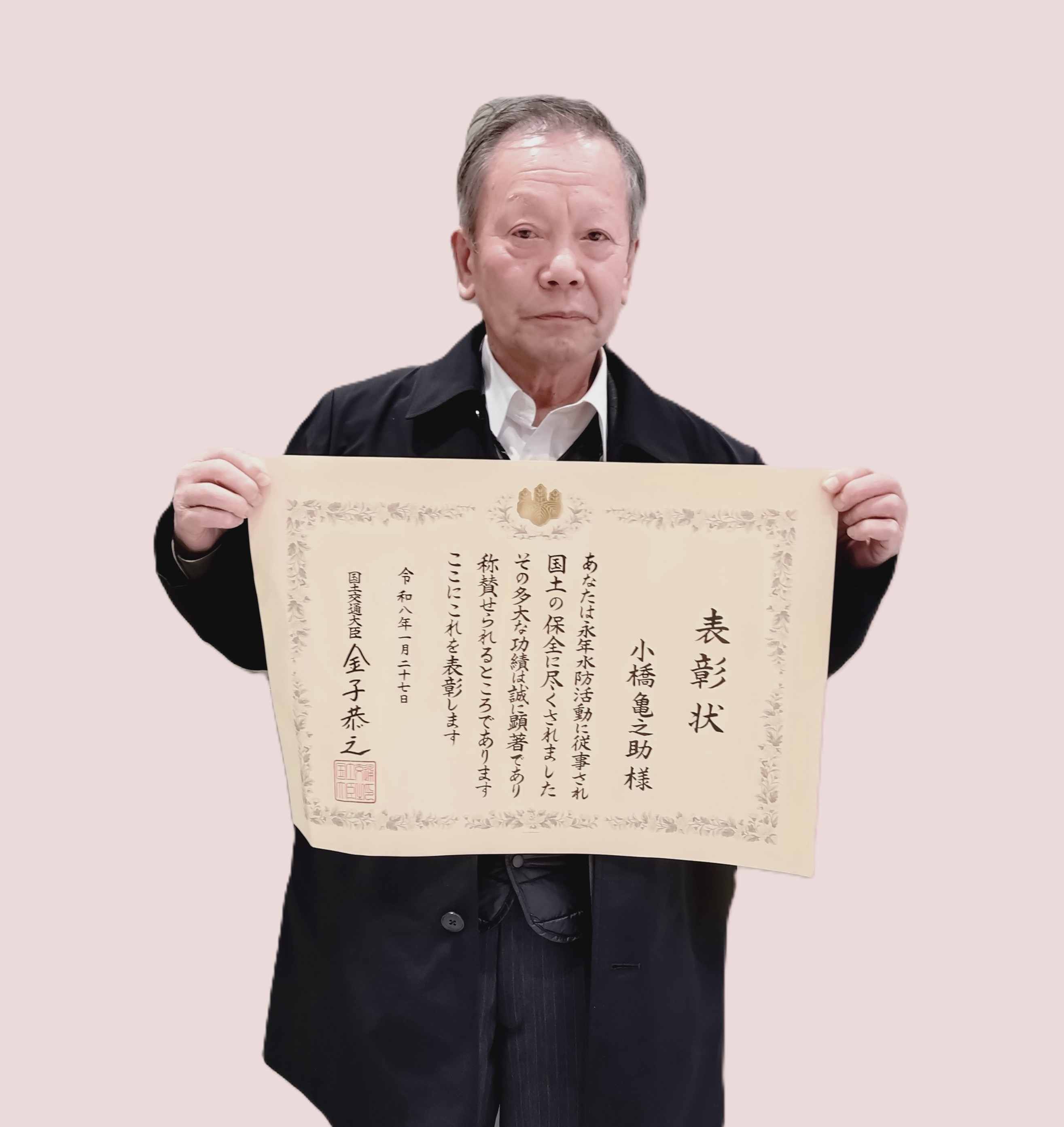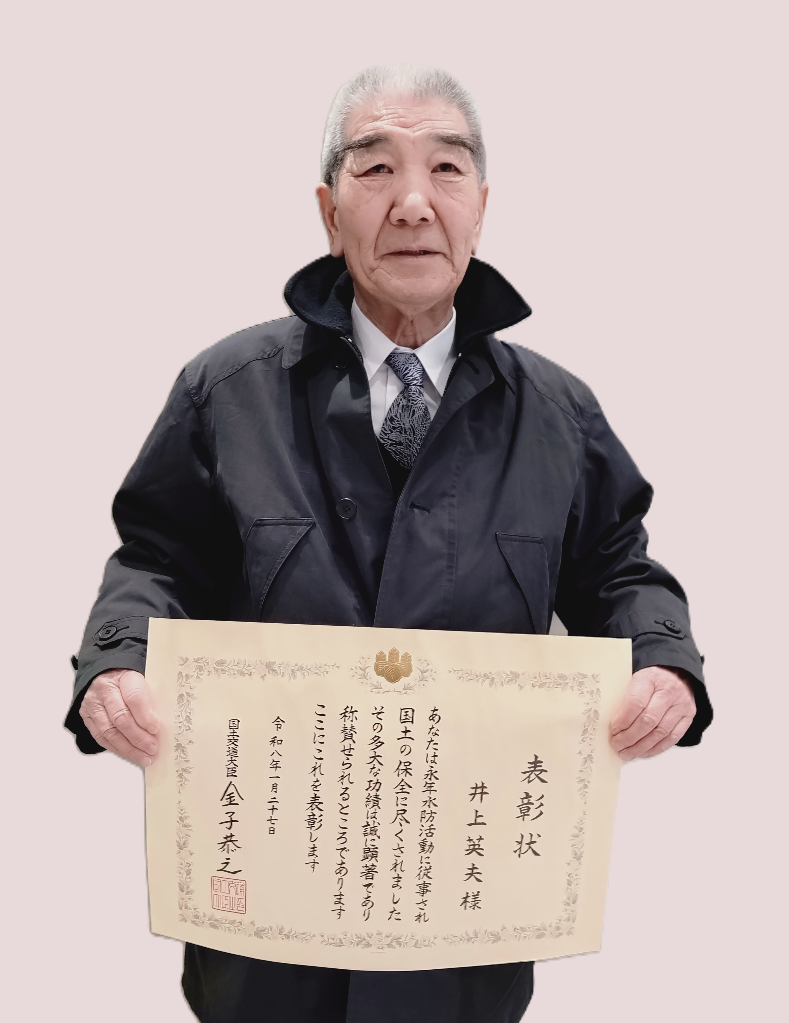 1月27日に国土交通省で開催された水防功労者国土交通大臣表彰式に出席され、